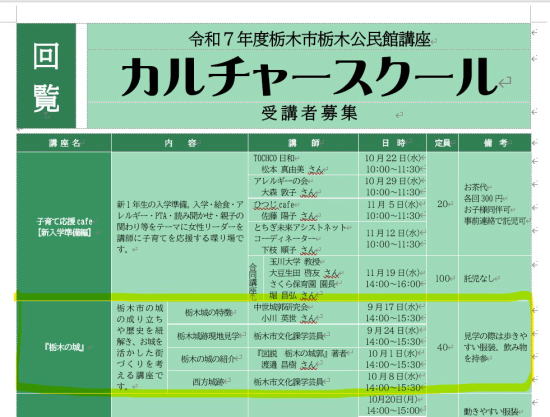 | ◆95 栃木県栃木市 カルチャースクール講師依頼 2025/09/25 | ||||||||||||||||||||||||||||